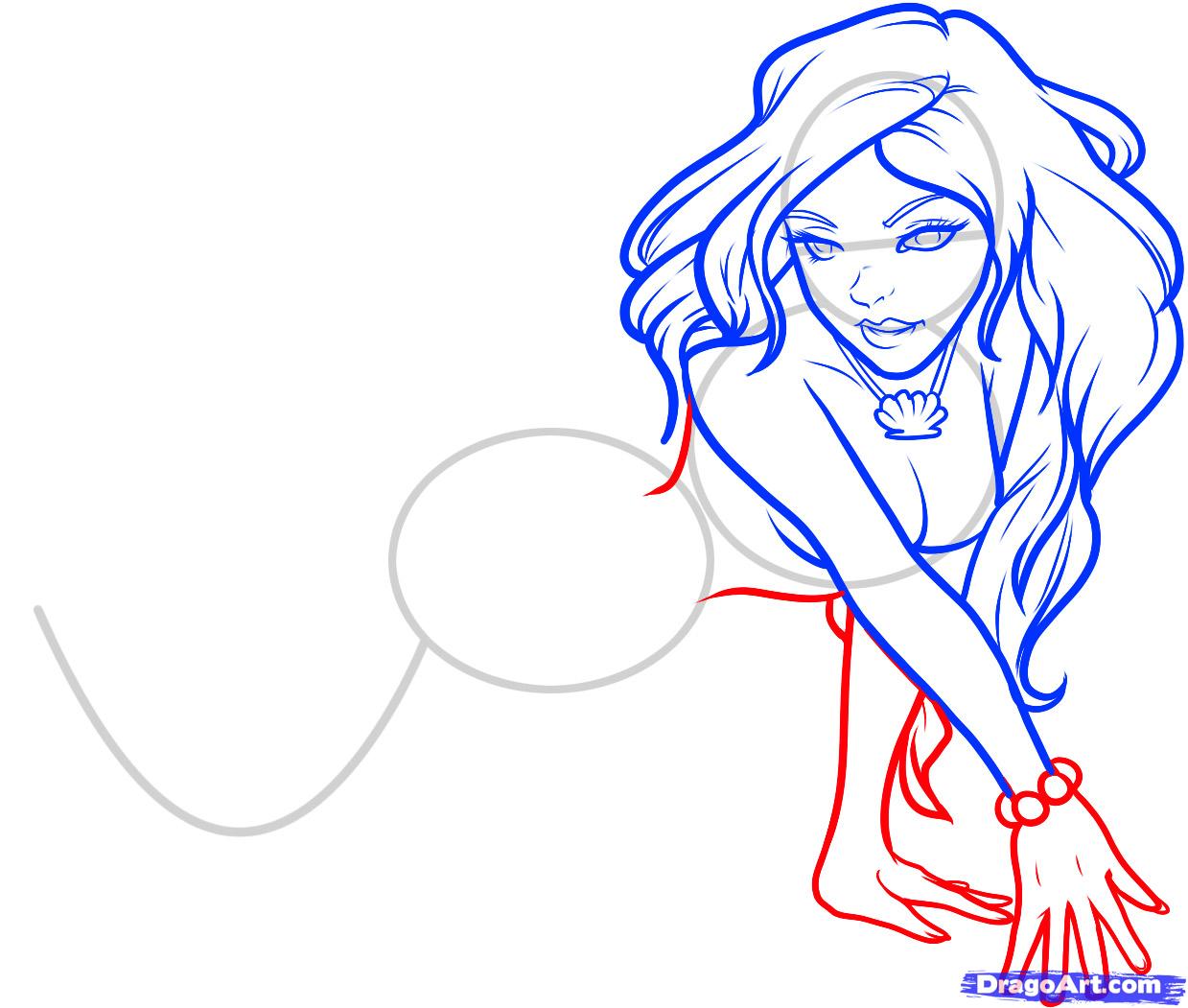Cute mermaid tail drawing: how to draw a mermaid girl,