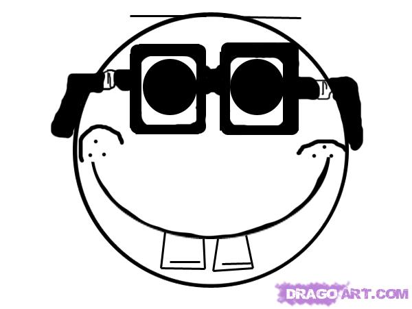 Nerd glasses sketch: how to draw a smiley nerd step