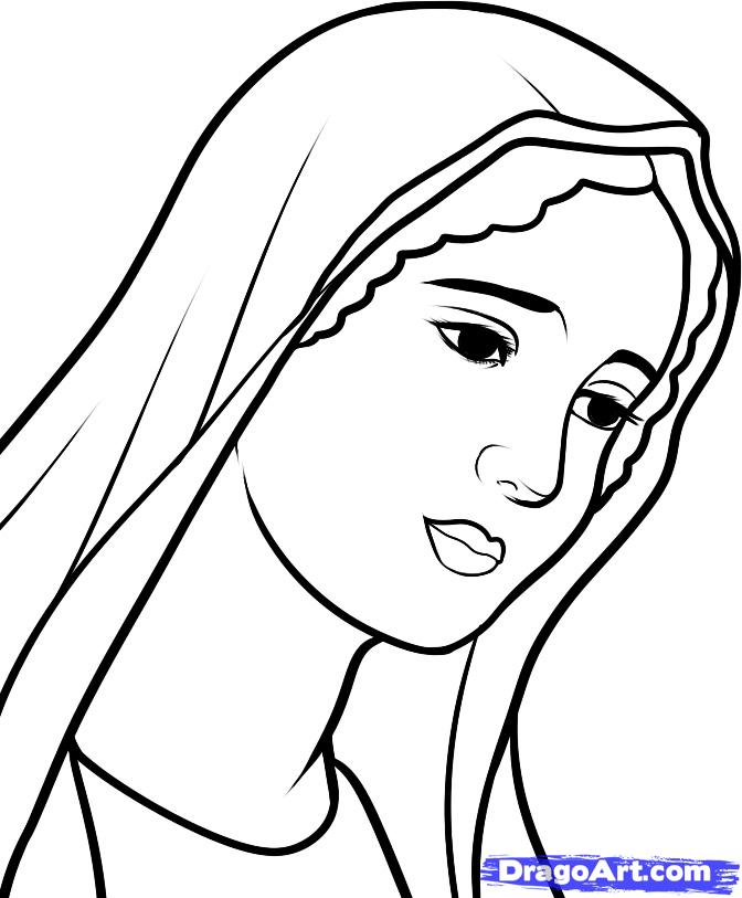Mother and baby line drawing: how to draw mary, virgin mary
