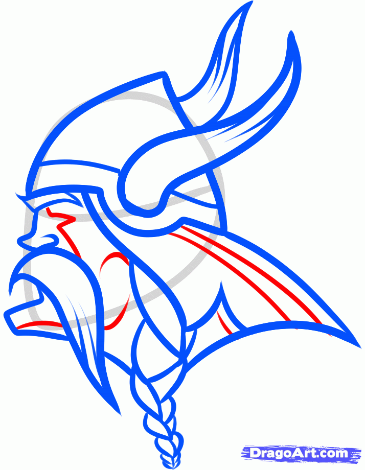 Simple football helmet drawing: how to draw the minnesota