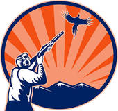 Double barrel shotgun clipart: Hunter aiming shotgun rifle at