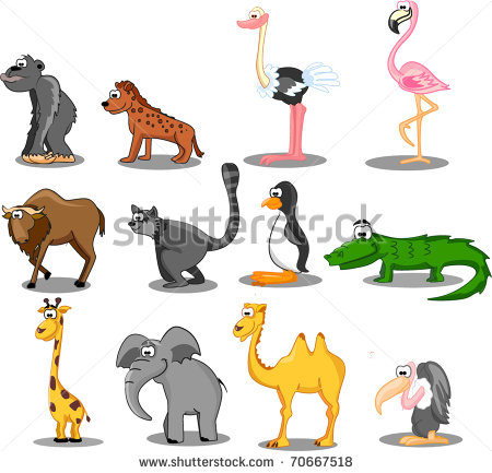 Hyena Clipart: hyena, ostrich, flamingos,