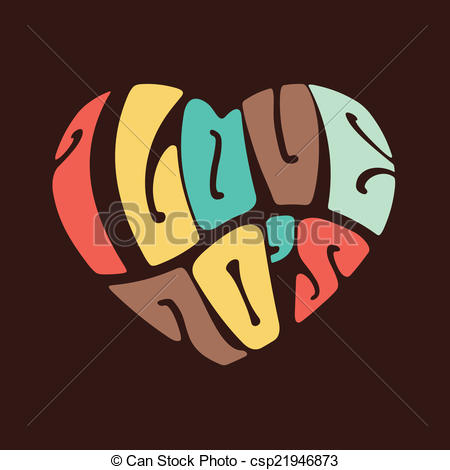 Decade clipart: "I Love 70's" Heart in words