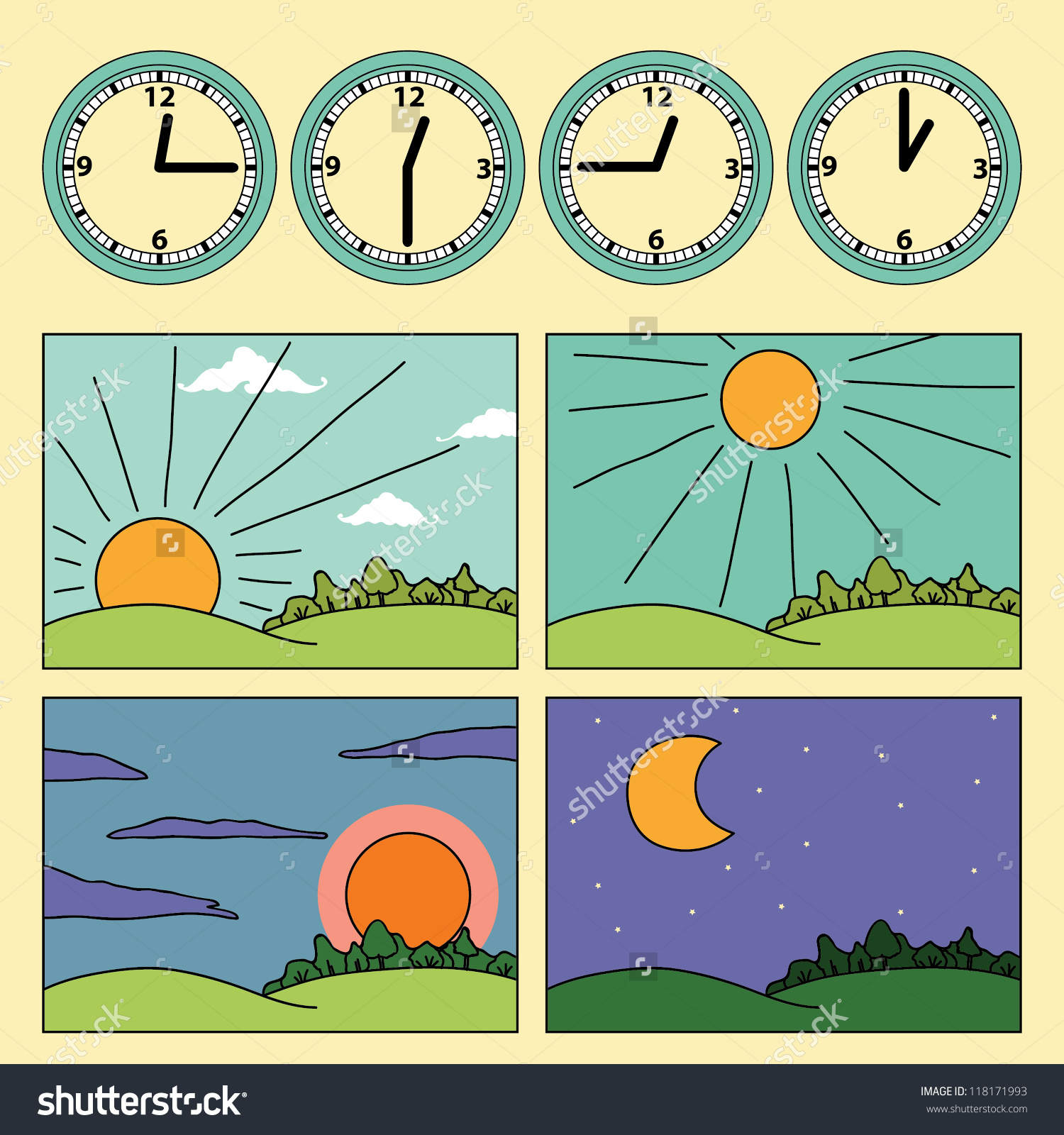 Afternoon clipart: Icons with landscapes showing