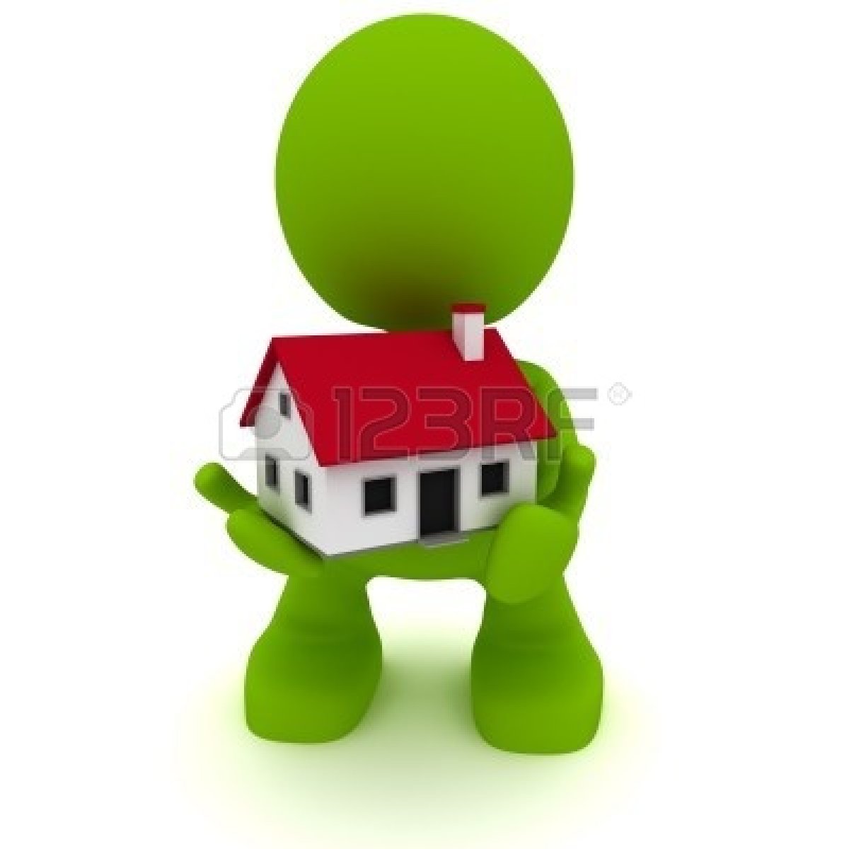 Cute house illustration: Illustration of a man holding