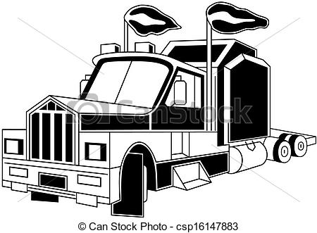 Semi truck clipart black and white: Illustration of semi trailer