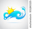 Water waves illustration: illustration of sun setting