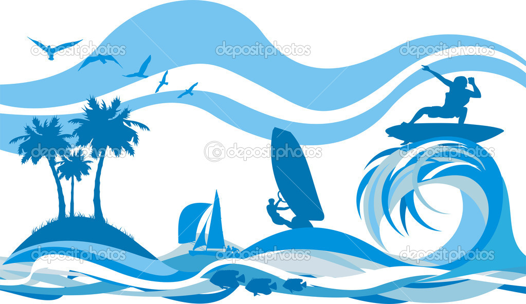 Water waves illustration: In blue - water sports