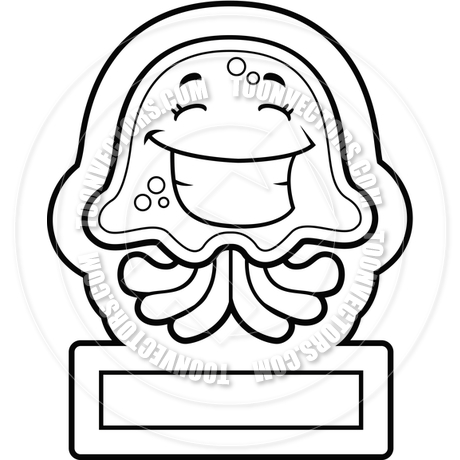 Jellyfish clipart black and white: Jellyfish Smiling (Black and