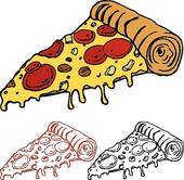 Whole pizza clipart black and white: Juicy Slice of Pizza