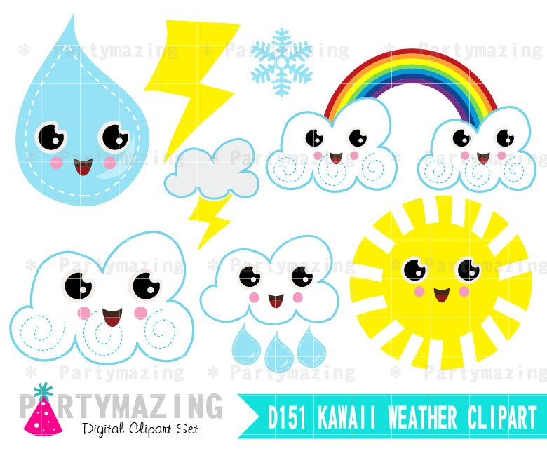 Weather clipart: Kawaii Weather Clipart Set,