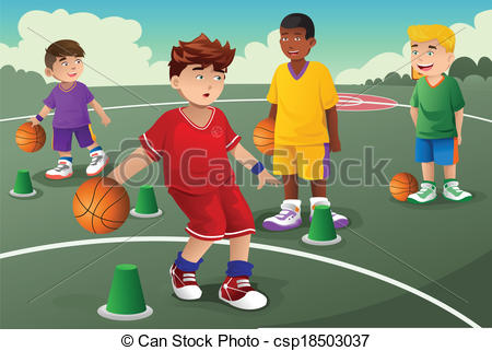 Practice clipart: Kids in basketball practice -