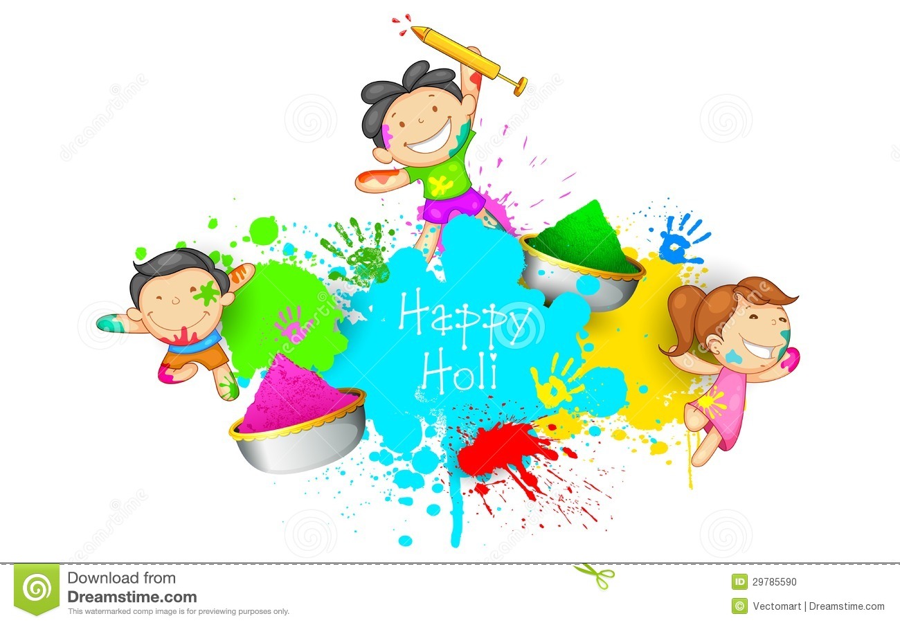 Holi clipart: Kids playing Holi