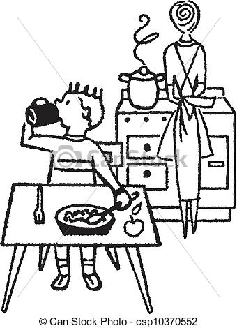 Dining table clipart black and white: Kitchen Clip Art Black And