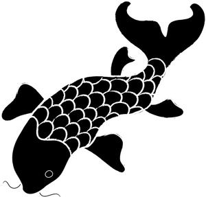 School of fish clipart black and white: Koi Clipart Image: Black and