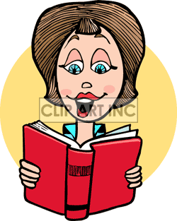 Woman reading clipart: Lady reading Out loud.