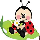 Lady bug drawing: Ladybug sitting on a green