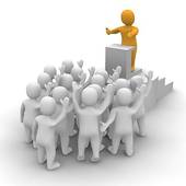 Leader clipart: Leader speaking to audience.