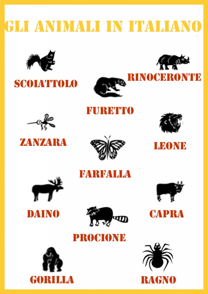 English language learning: learn italian animals on