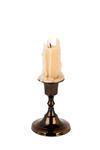 Candle flame white background: Lighted candle in an old brass