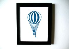 Vintage hot air balloon posters: LINOCUT PRINT Hot air balloon