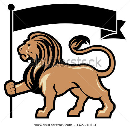 Fierce lion clipart: lion mascot hold a flag