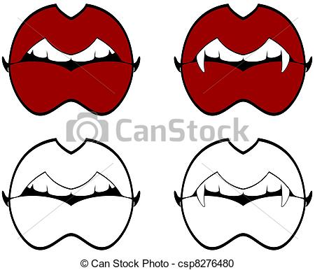 Lips clip art black and white: Lips and Vampire Teeth -