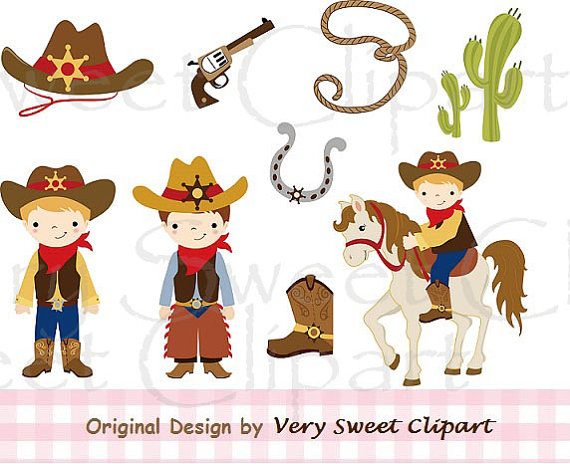 Cowboy clipart: Little cowboy clipart digital