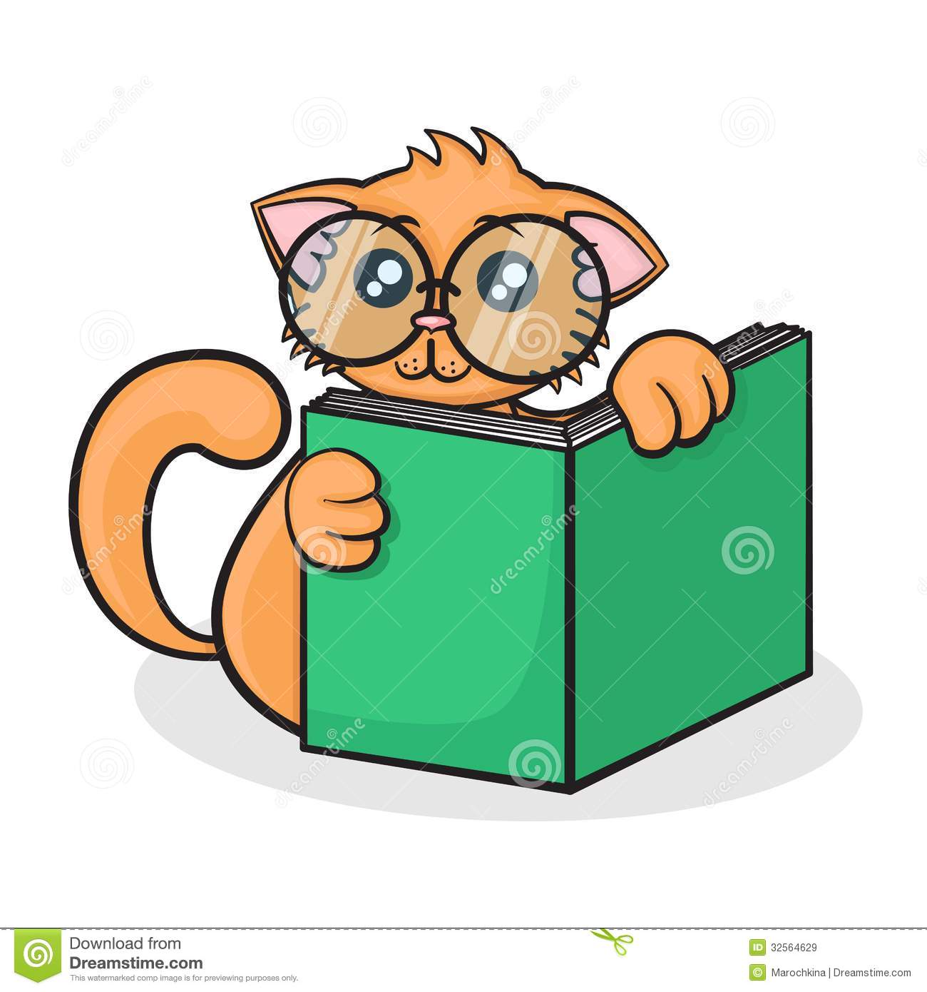 Reading glasses cartoon: Little funny cartoon cat with