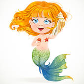 Little girl swimming clipart: Little red-haired girl mermaid
