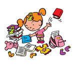 Mess clipart: little schoolgirl in a messy