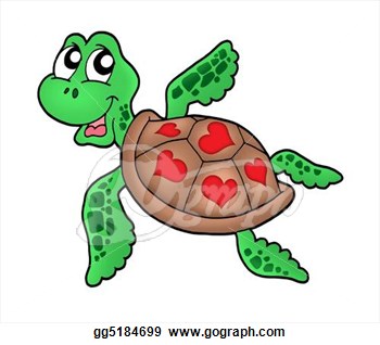 Hawaiian sea turtle clipart: Little sea turtle with hearts