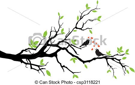 Spring birds clipart: love birds sitting on a tree,
