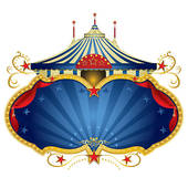 Vintage circus elephant clipart: Magic blue circus frame