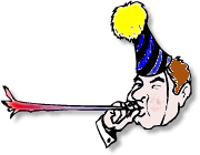 Free birthday clip art for men: man blowing noisemaker