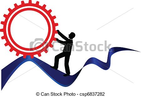 Difficulty clipart: man pushing gear vector