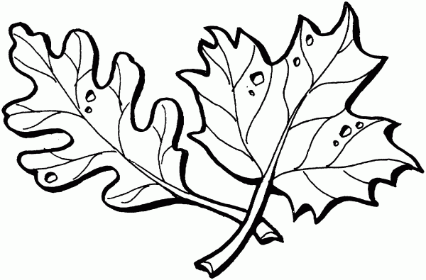 Oak leaves coloring pages: Maple And Oak Leaves Coloring
