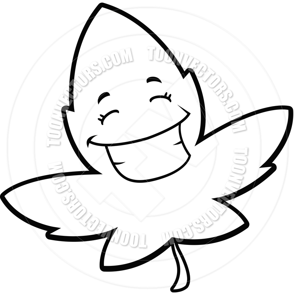 Maple leaf clipart black and white: Maple Leaf Smiling (Black and