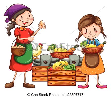 Market clipart: Market vendors selling the