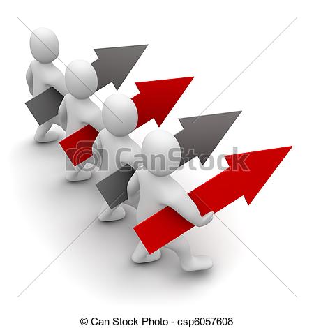 Direction clipart: Men going in one direction 3d