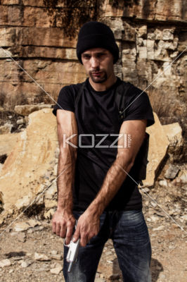 Militant clipart: menacing man with a handgun