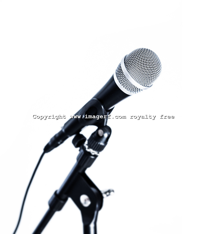 Microphone with cord illustration: microphone white background.