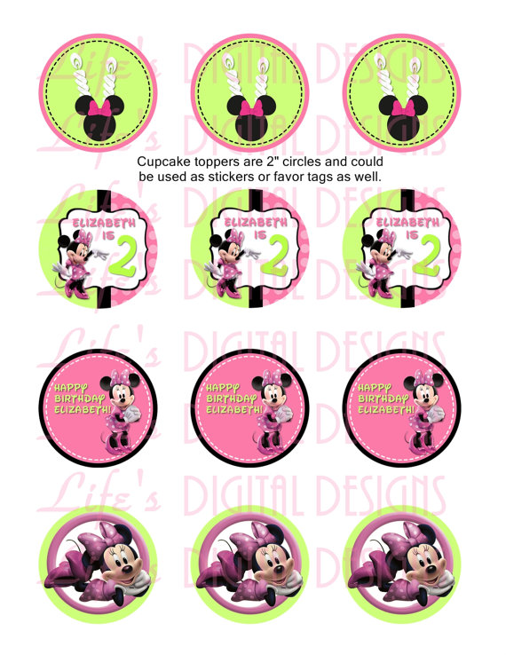Pink birthday cupcakes: Minnie Mouse Cupcake Toppers