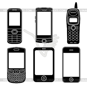 Cell phone clip art black and white: Mobile phones silhouettes set