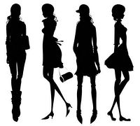 Mode clipart: mode, mädels, silhouette