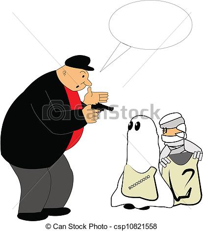 Mugger clipart: mugger holding up 2 lil kids for their candy at Halloween