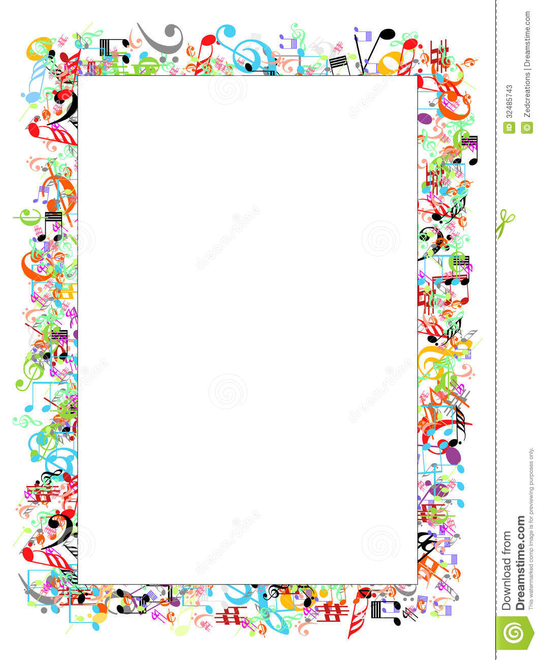 Colorful music notes border: Multi color border with music