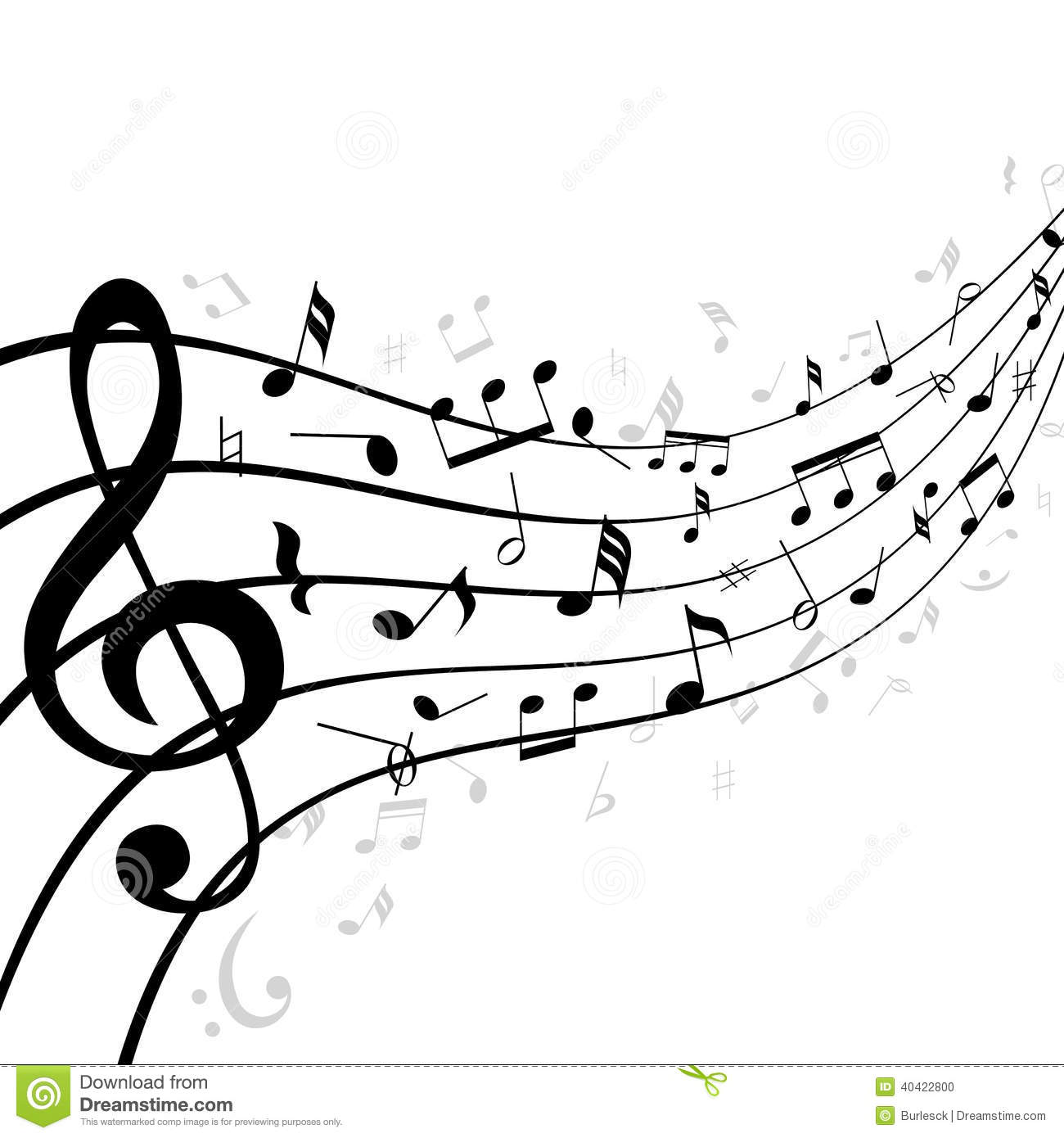Wavy music staff clipart: Music notes on a stave or