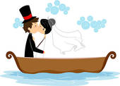 Newlywed clipart: Newlyweds Kissing in a Boat