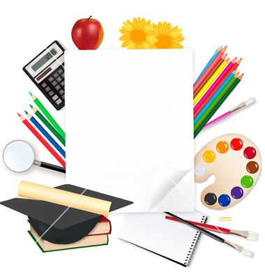 School supplies background: Notepad with school supplies.